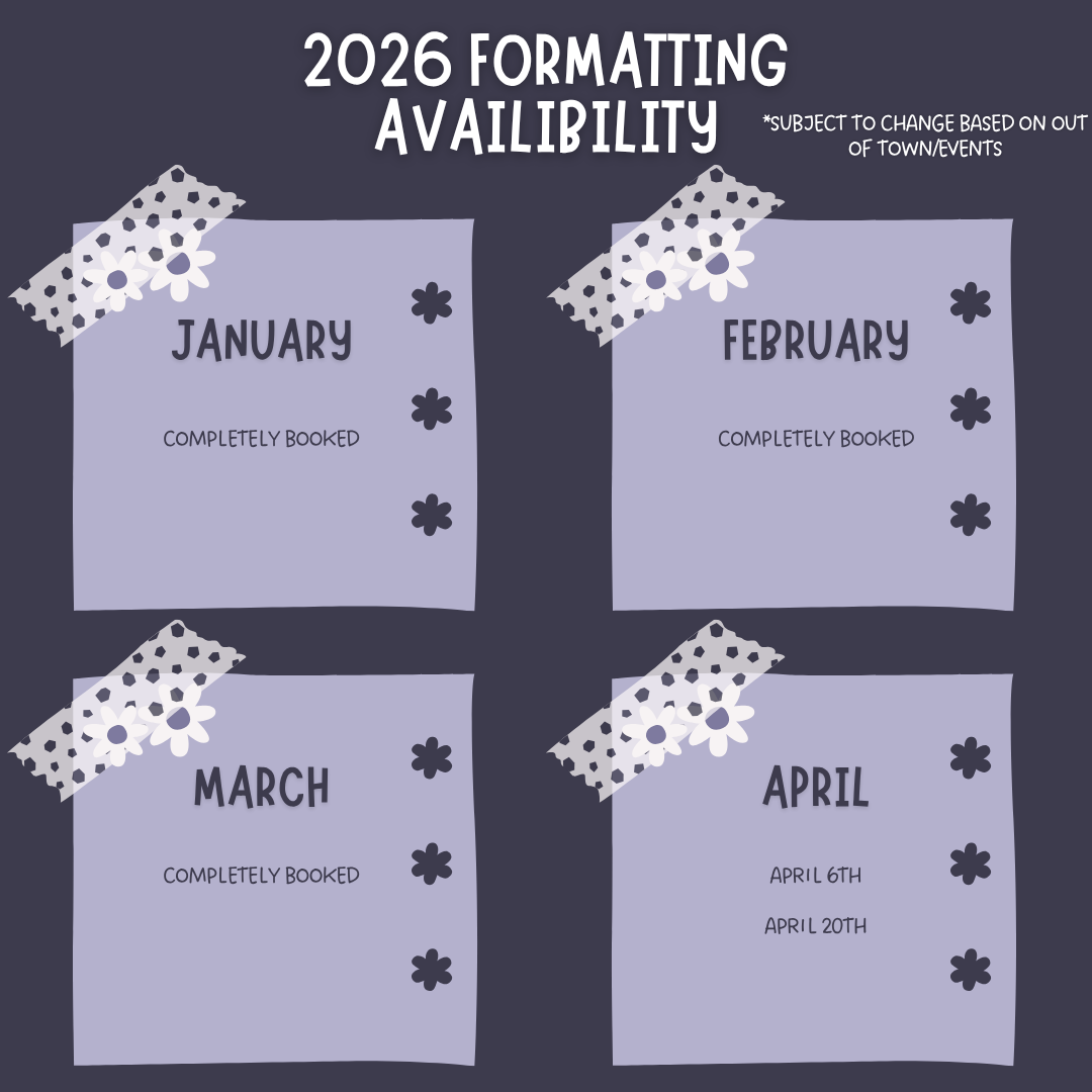 Grace Elena has been formatting for indie authors since January 2024. She has been able to assist 24 authors so far, some with more than one novel. You can find her list of books she’s formatted in the ‘portfolio’ tab to see if her formatting is what you want! Grace has always loved the art of formatting and utilizing Vellum has allowed her to continue to help so many authors who might not have the time, the resources, or the finances to do it on their own. Grace lives in Nashville, TN with her cat and can be found spending her days reading, writing, going on walks or binging movies when she’s not formatting.